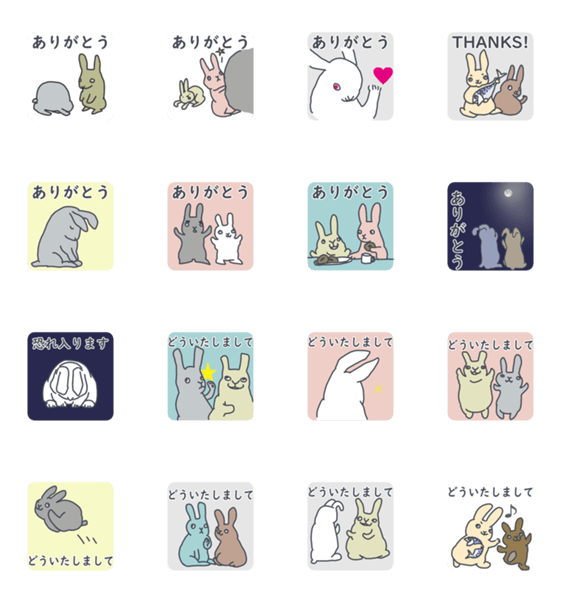 うさぎの「ありがとう」と「どういたしまして」スタンプです