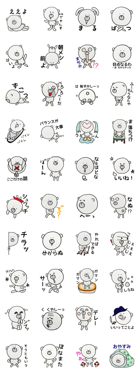 くまりんスタンプ vol.2 返信用スタンプです!ちょっとシュールな一場面もあります。