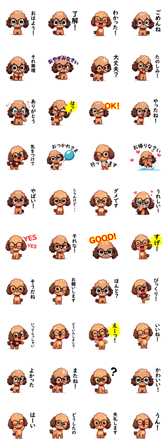 40種類のかわいいプードルスタンプで日常会話をもっと楽しく!笑顔や泣き顔など、人気のコメント付きで感情豊かに表現できます。