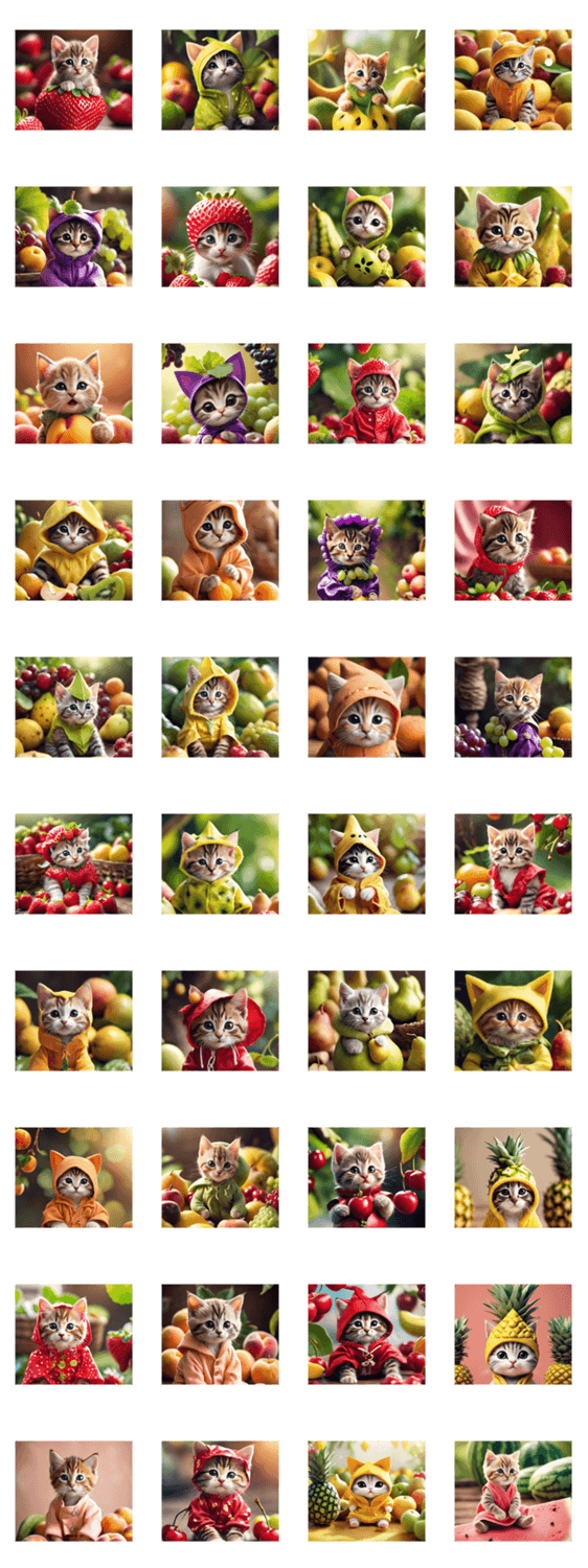 春夏秋冬年中使える/文字なし/アレンジ/素材/ねこ/こねこ/ネコ/キャット/cat/果物/フルーツ/いちご/オレンジ/ぶどう/食べ物/フード/人気/おすすめ/実写/画像生成/AI作画