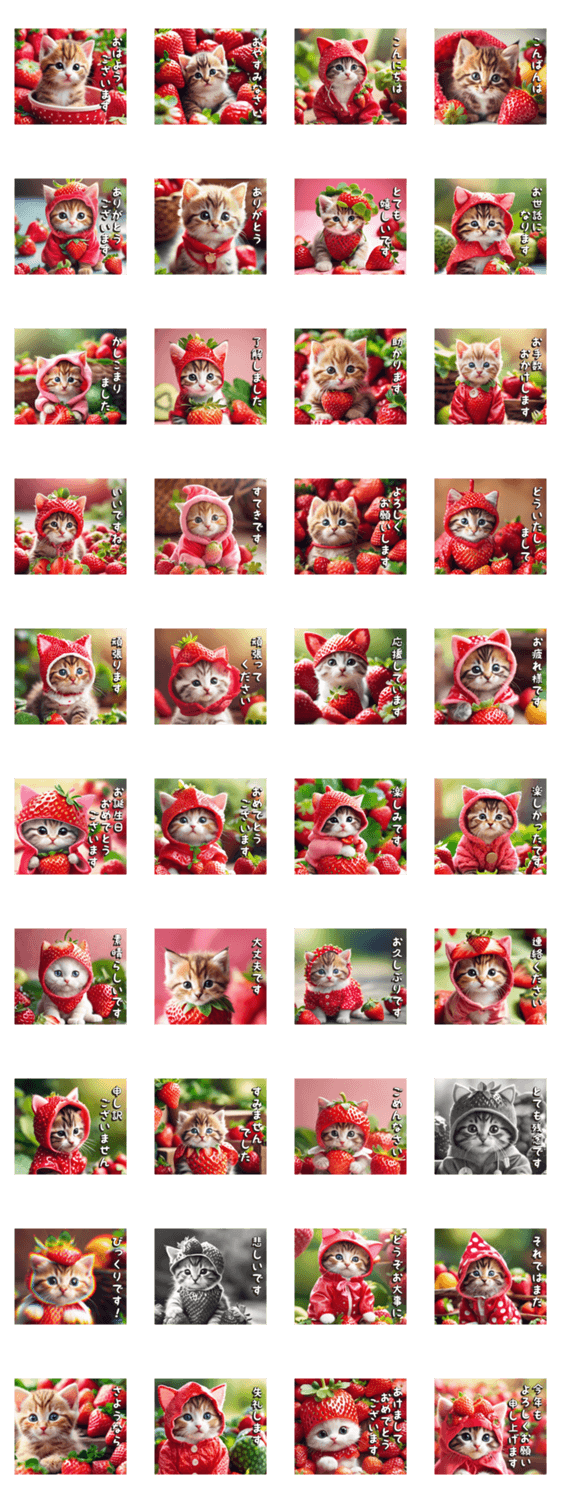 春夏秋冬年中使える/丁寧/敬語/挨拶あいさつ/日常/おめでとう/お祝い/誕生日/正月/あけおめ/猫/ねこ/こねこ/ネコ/キャット/cat/いちご/食べ物/人気/おすすめ/実写/画像生成
