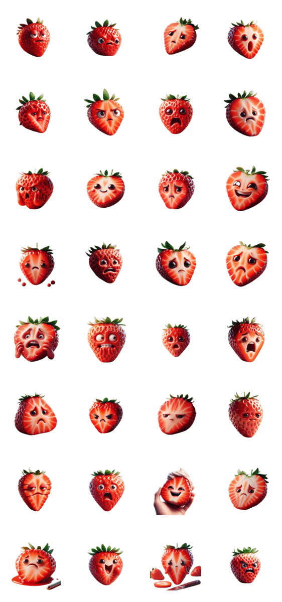 "驚いたイチゴのスタンプ、イチゴ、驚き、表現力豊か、イラスト、面白い、LINEスタンプ、