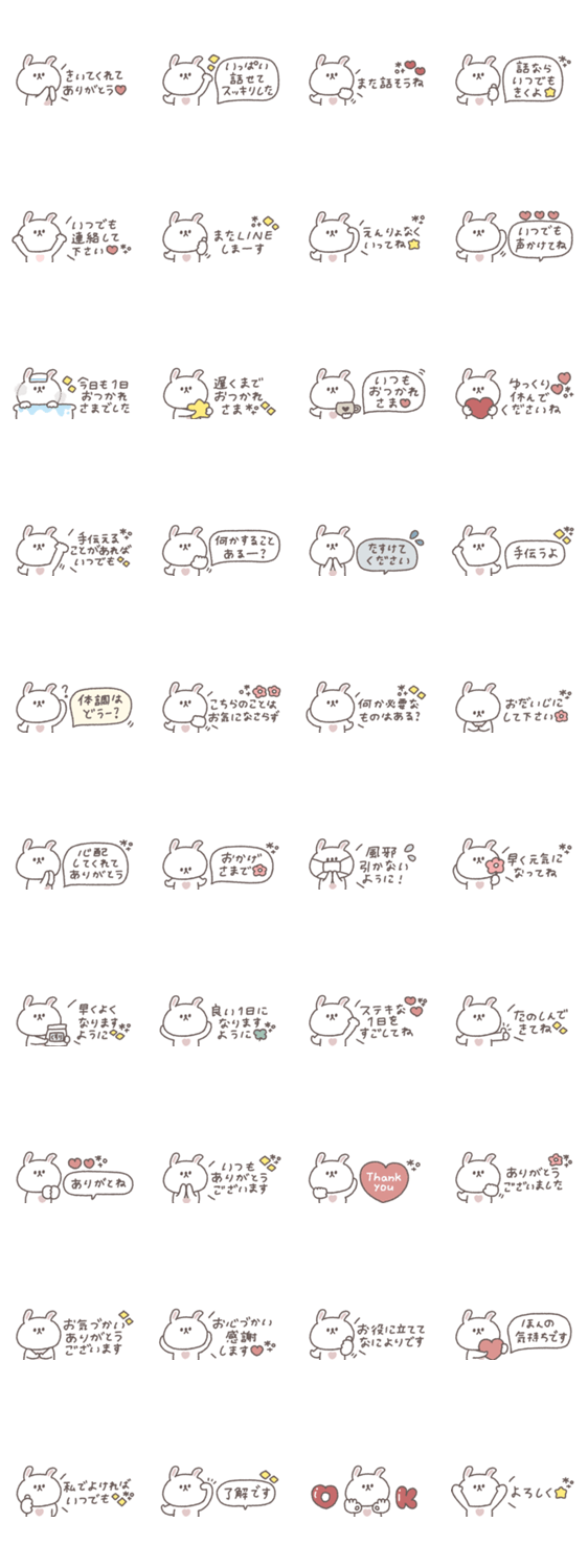 一つあると便利な小さくてかわいいうさぎのスタンプです。 うさぎ/大人可愛い/シンプル/あいさつ/吹き出し/くすみカラー/省スペース