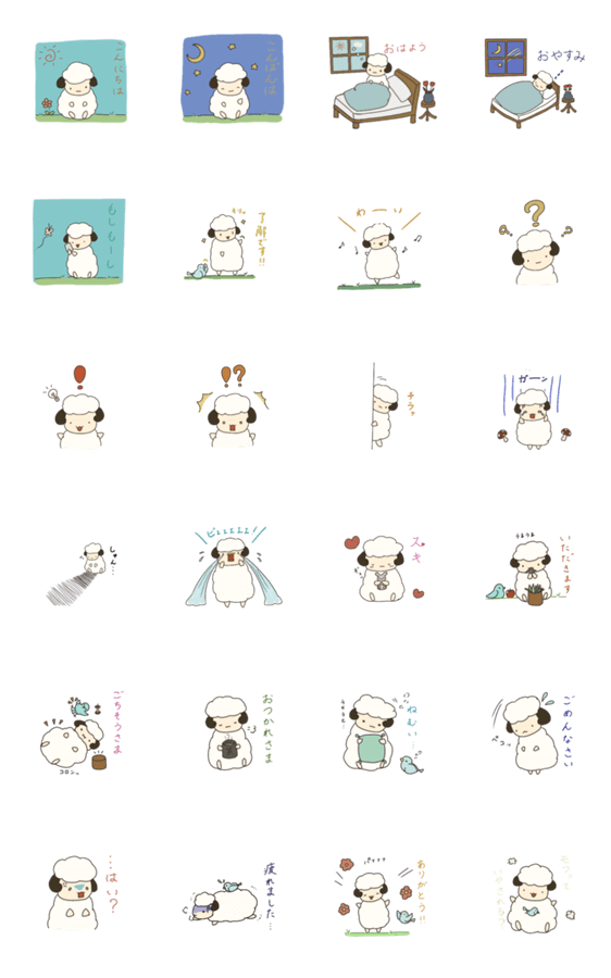 ひつじのめぇさんとことりさんによるスタンプです。