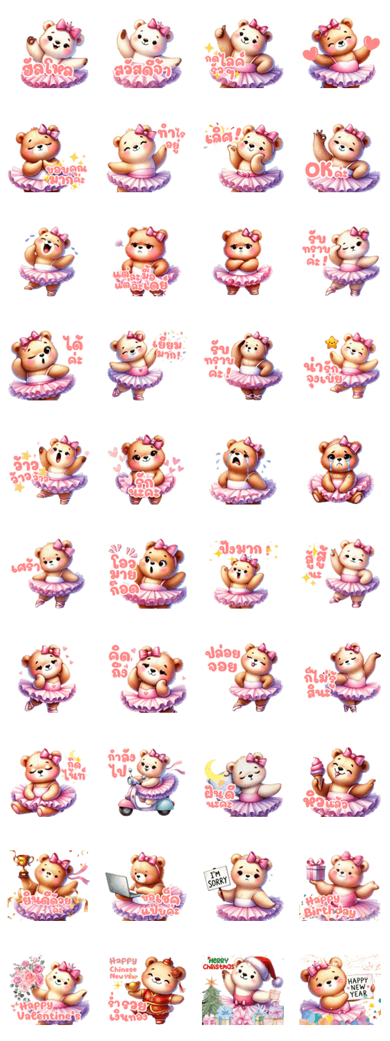 Enjoy using our cute teddy bear in pastel clothes, It is good for every use, frequently used words, let our cute sweet bear brighten your daily chat!