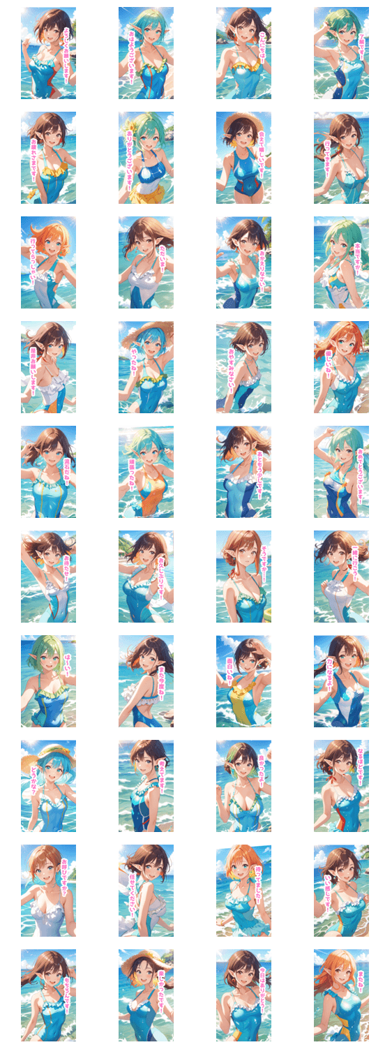 海の水着のエルフの女の子BIGスタンプ -LINEスタンプマニア