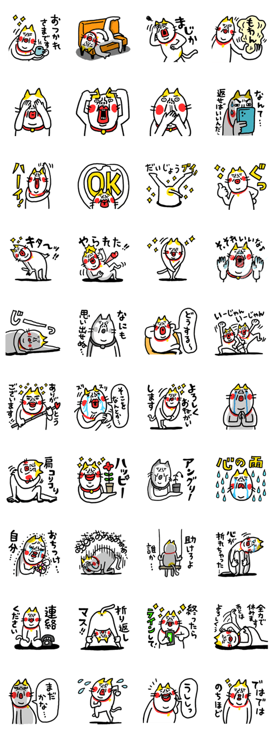 かわきも100%猫の日常セットです。使いやすく楽しい会話になります。年上や友達、グループでも使いやすいです。