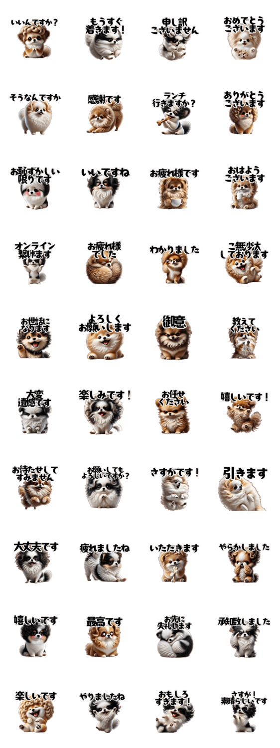 モフモフの犬による使える敬語とよいしょ太鼓持ちスタンプです。毛量多め、相手がほだされる要素多めでお届けします。ビジネスやママ友とのやり取りにも。