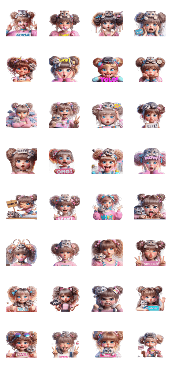 "頭の上に猫、変な表情、ユーモア、変わっている、LINEスタンプ、イラスト、コミュニケーション、