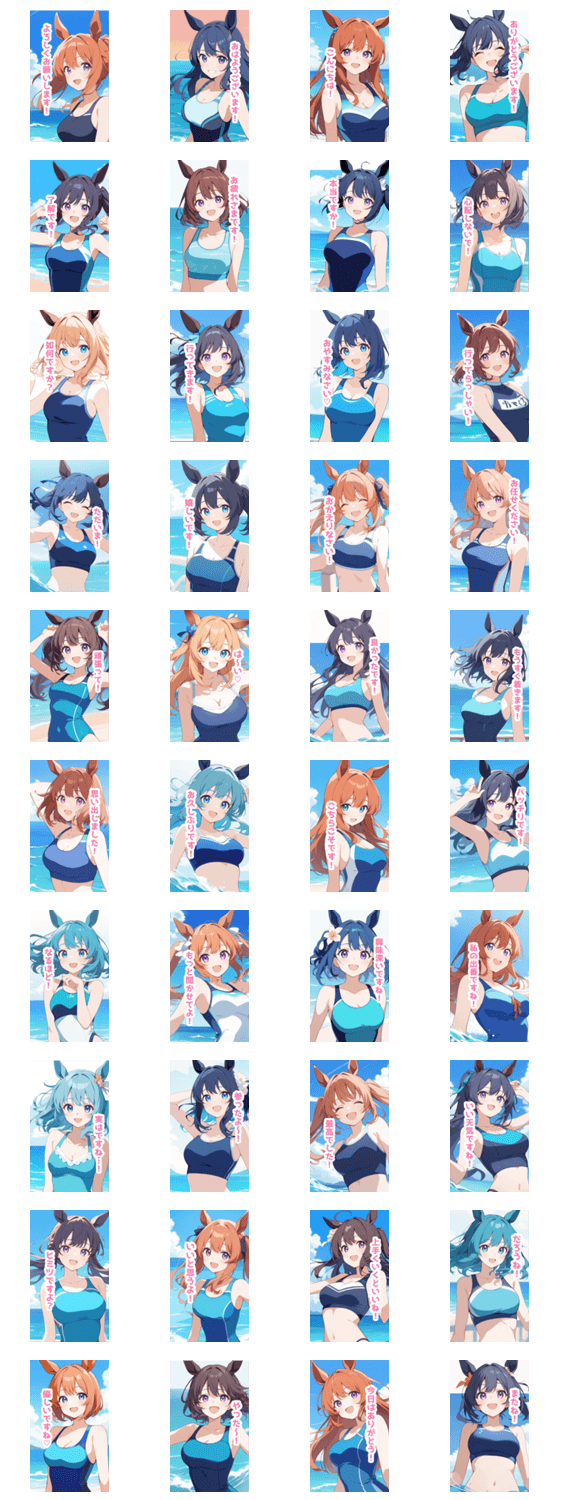 海で遊ぶ水着の馬の女の子BIGスタンプ -LINEスタンプマニア