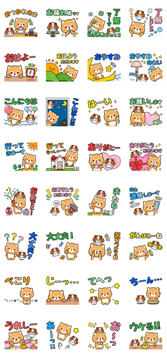 柴犬『クッキー』とキャバリア『チェリー』の、毎日よく使うあいさつや、日常会話の言葉ばかりを集めたスタンプ♪癒し系なかわいいキャラが、LINEトークを盛り上げます☆