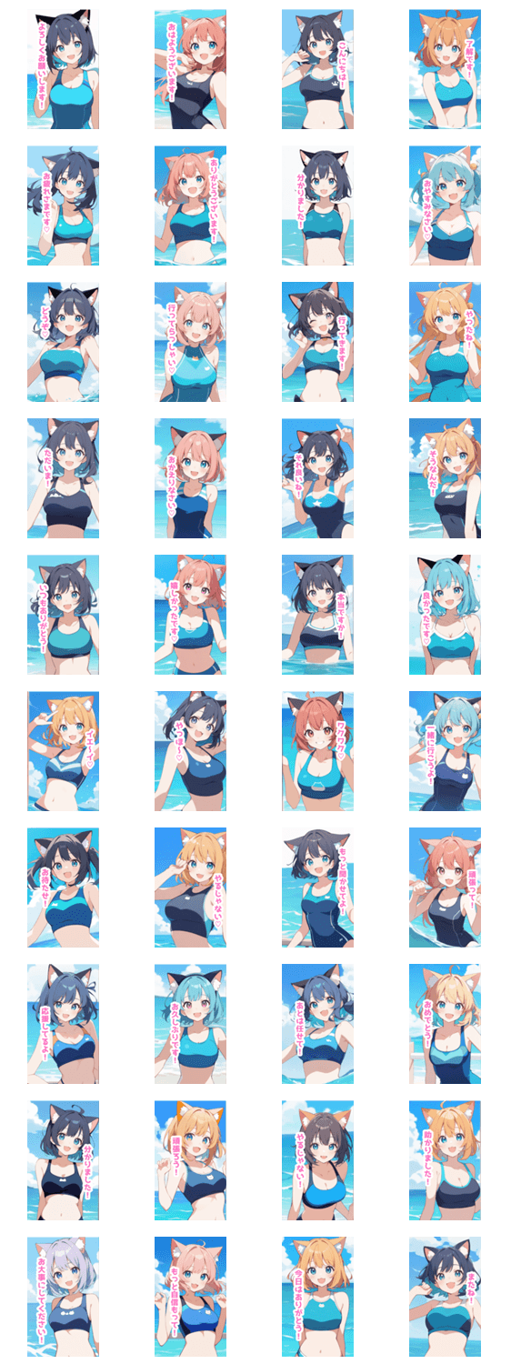 海で遊ぶ水着の猫の女の子BIGスタンプ -LINEスタンプマニア