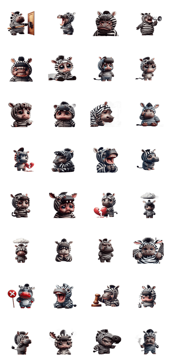 "シマウマカバ ストレスがいっぱい、動物、イラスト、プレッシャー、生活、ユーモア、表情スタンプ、LINEスタンプ、おかしい、疲れた、
