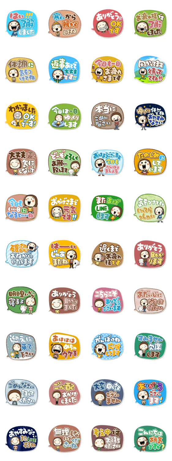 カラフルな吹き出しの毎日使える日常会話。文字も可愛くカラフルに。らんちゃんのそばに時々にゃ吉が出てきます。