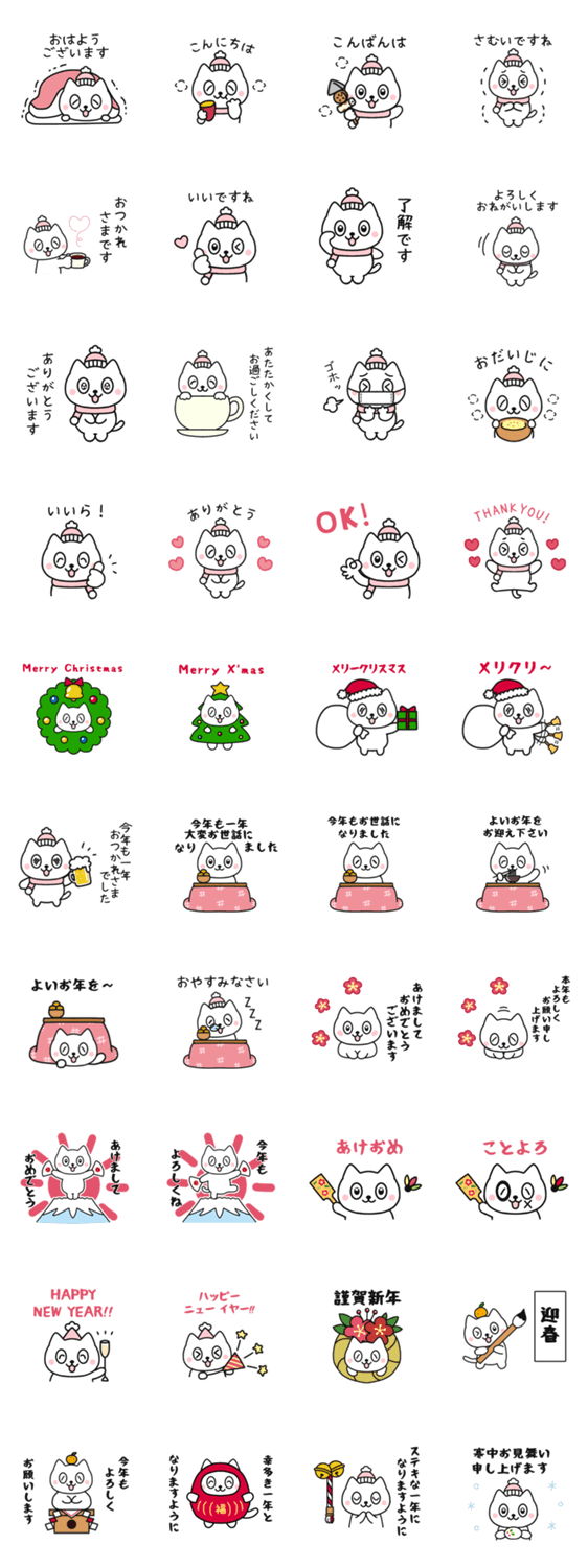 丹那のしろねこ 冬&年末年始のあいさつ -LINEスタンプマニア