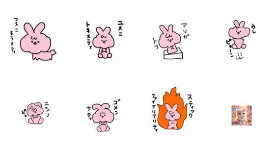 ピンクのウサギがパンパンになったスタンプです。 大人気です。