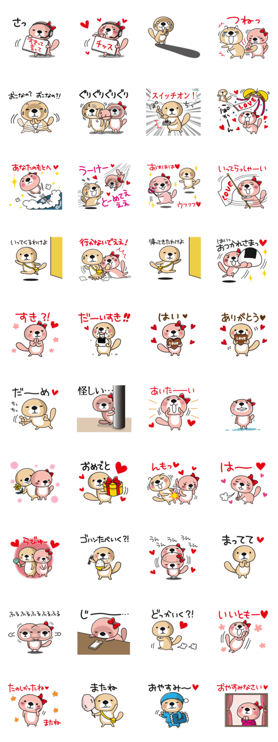 突撃!ラッコさんの番外編。ラッコさんとラッ子ちゃんのラブラブスタンプ。カップル、お友達、ご家族で楽しめます。バレンタインやクリスマス、イベントを盛り上げてね!