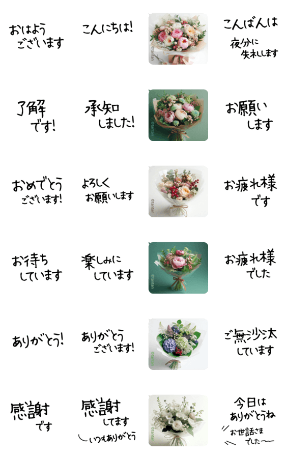 | スタンプ説明 | お花が好きな大人に,丁寧,敬語,毎朝の挨拶などにも使いやすいスタンプです.挨拶,家族,友達,目上の方,ご近所さん,通学,町内,お見舞い,6月の花,春の花,母,贈り用,プレゼント |