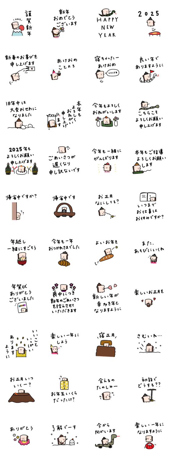 新年に使いたいお正月スタンプです。まめ食パン。ゆるくてかわいい。