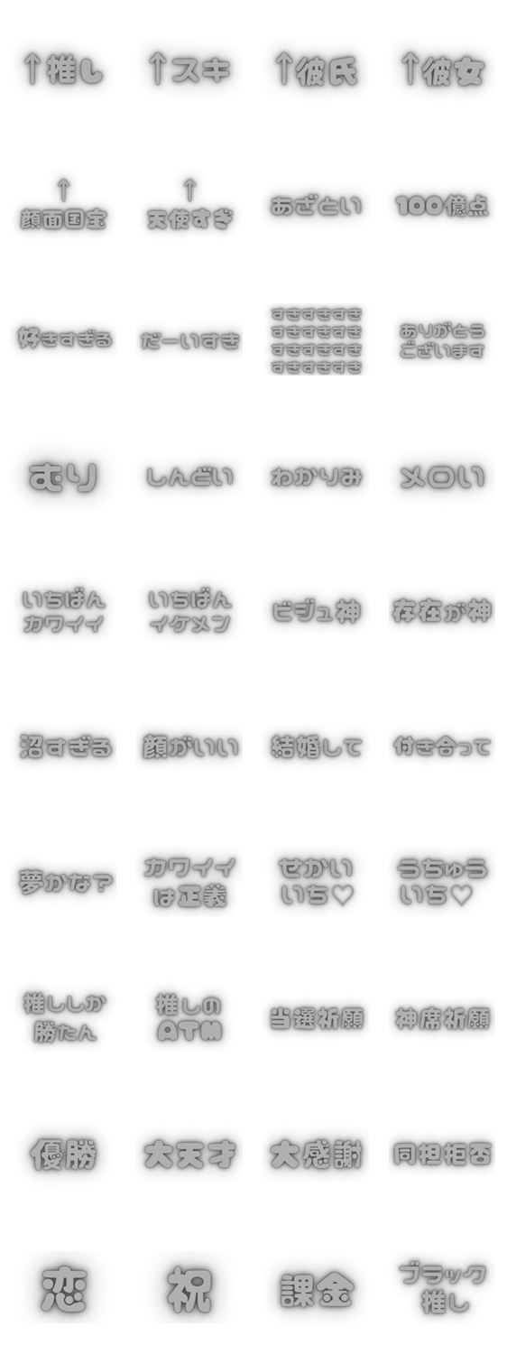 推しや好きな人がいる人へ。使いやすい省スペースの色別文字スタンプです。写真デコにも◎ ブラック/シンプル/アイドル/アニメ/オタク/担当/KPOP/JPOP/韓国/量産型/地雷/