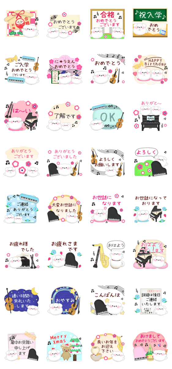 【マルチーズ】一年中返信に使える/挨拶スタンプ/ピアノ/音楽/敬語/お正月/新年/年賀/あけましておめでとう/お祝い/おめでとう/入学/合格/入園/年賀状/犬/mamama-chin