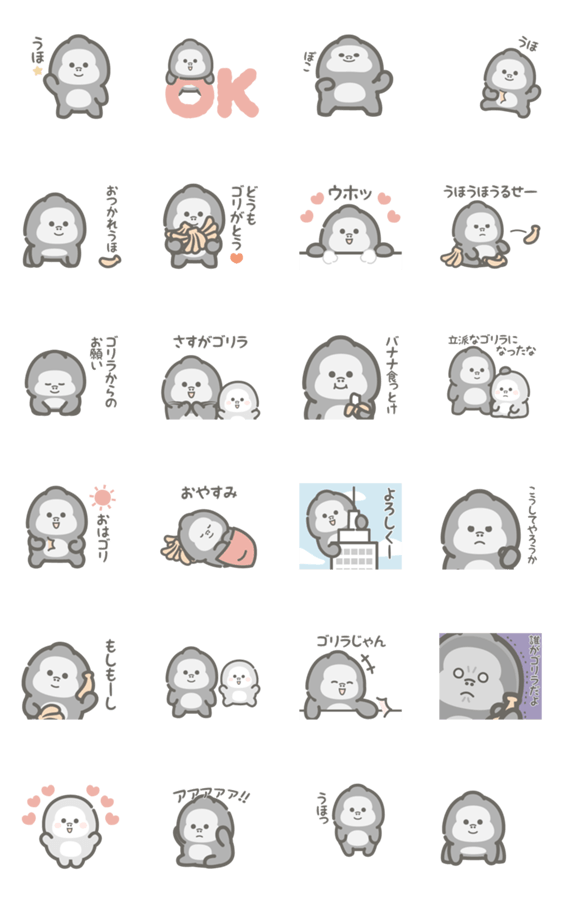 どこか憎めないかわいいゴリラの動くスタンプです。ゆるかわ/毎日使える/日常/挨拶