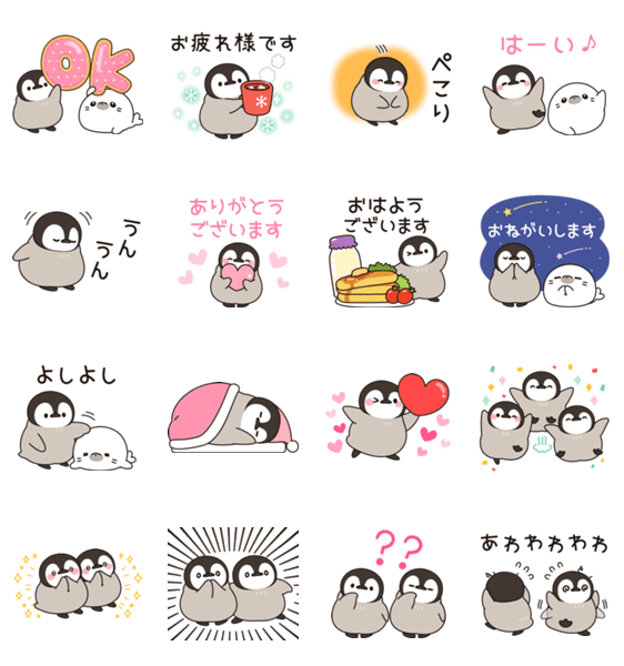 可愛い子ペンギンとアザラシのほっこり癒されるスタンプです♪ 無料配布された【日常×敬語で使える♡ほのぼの子ペンギン】の再リリースが含まれています。
