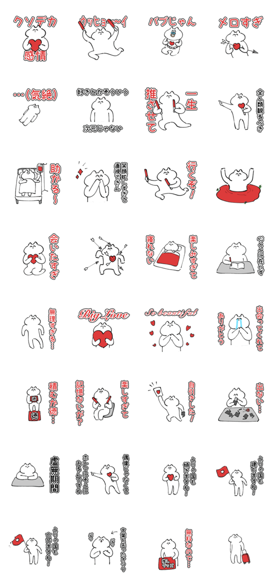 赤】推し活をするネコのスタンプ[修正版]