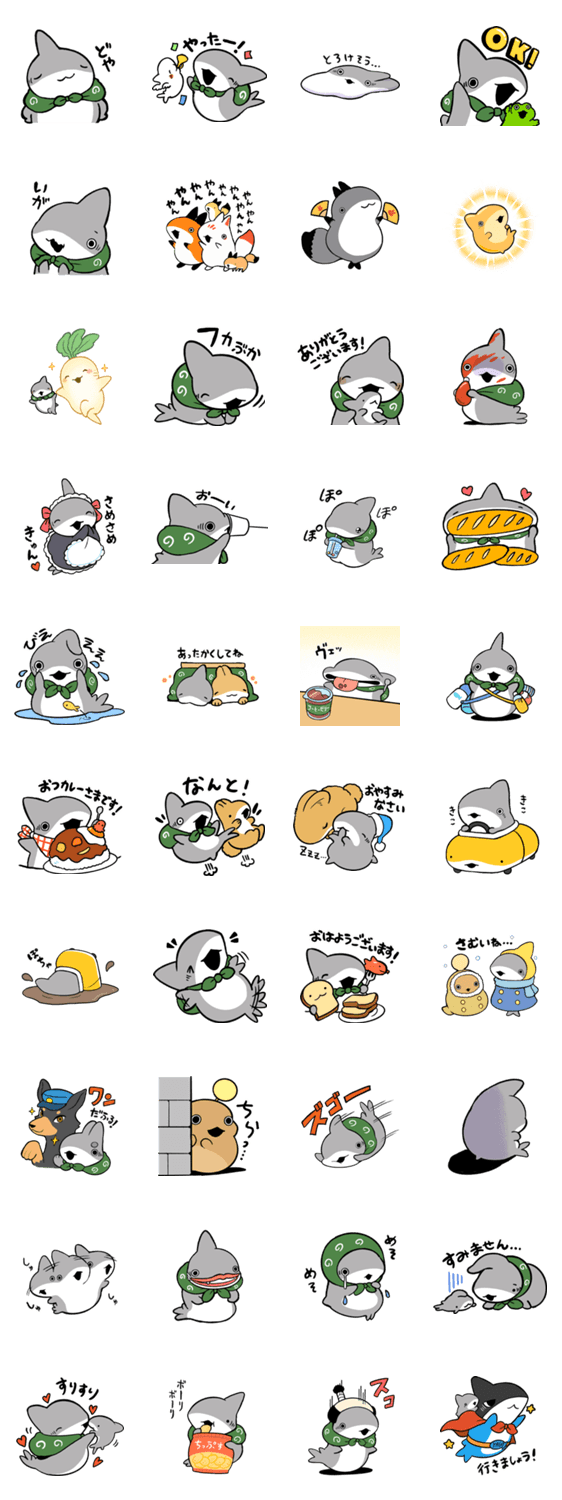 子ザメのスタンプです。新しい仲間も増えました! このスタンプは以前無料配布された「おでかけ子ザメ×ニコニコカドカワ祭り」の再リリースバージョンも含まれています。