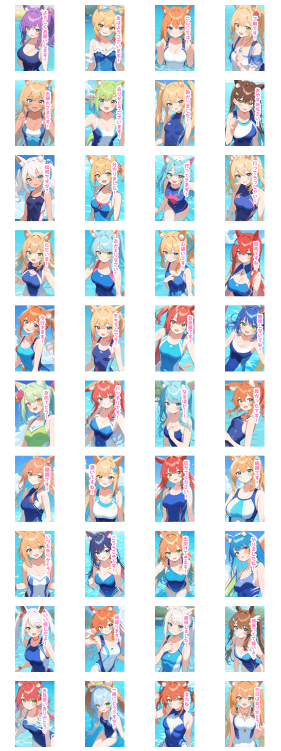 海で遊ぶ水着馬女子BIGスタンプ -LINEスタンプマニア