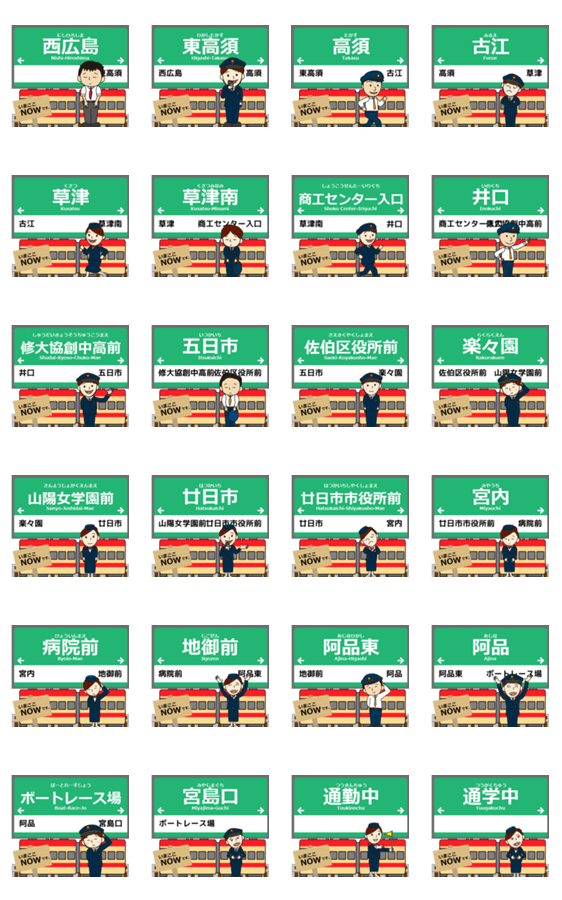 広島 宮島線の駅名 シンプル敬語 -LINEスタンプマニア
