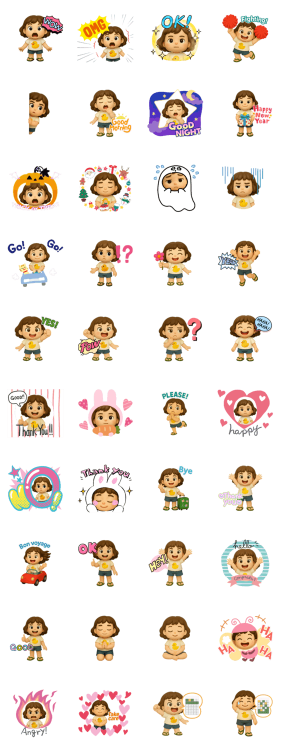 | スタンプ説明 | Meet Ducky Chan - the adorable girl. This sticker set #1 of 40 expressions captures every mood:happy, mad, curious, or zen! Add a splash of cute to your chats! |