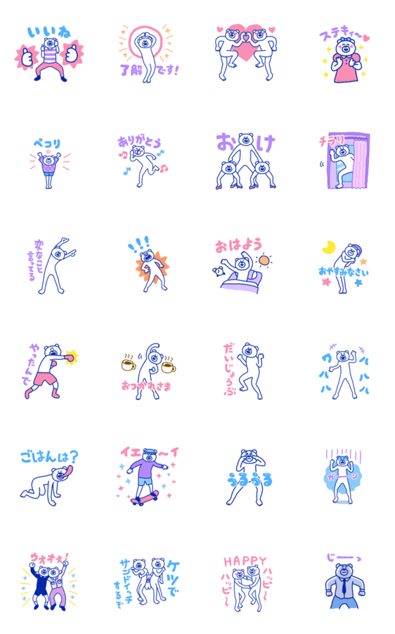 けたたましく動くクマ、略してけたくまがおしゃれしているスタンプ。「動く!けたくま & H&M」の無料コラボスタンプの再リリースが含まれています。
