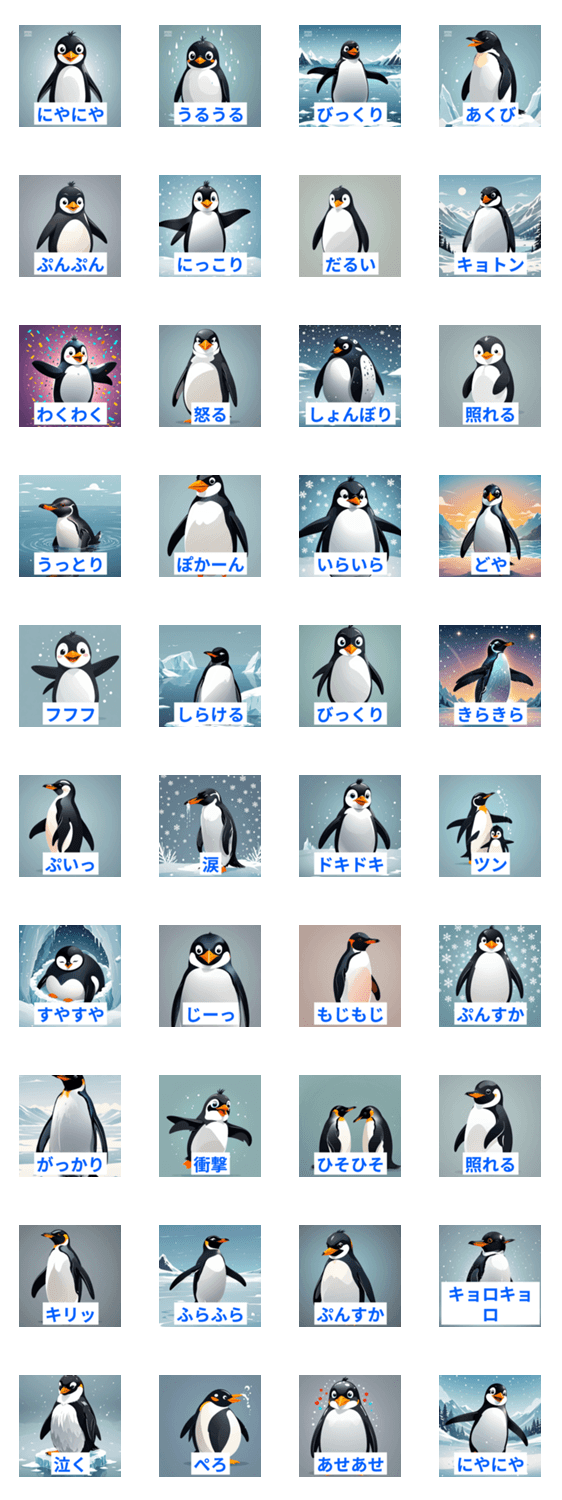日常のあれこれを表情豊かなペンギンが代弁します。ゆるっとかわいい気持ちを、トークで届けてみませんか?全部で40種類!