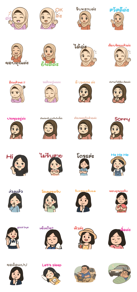 | スタンプ説明 | Admin Muslim girl and young girl answer questions for customers and technicians. |