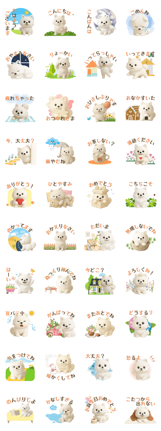 ふわふわ笑顔のポメラニアン「PINO」が、毎日のやりとりをやさしく彩ります♪ どの季節でも使いやすい、ぬいぐるみ風のほっこりスタンプです。
