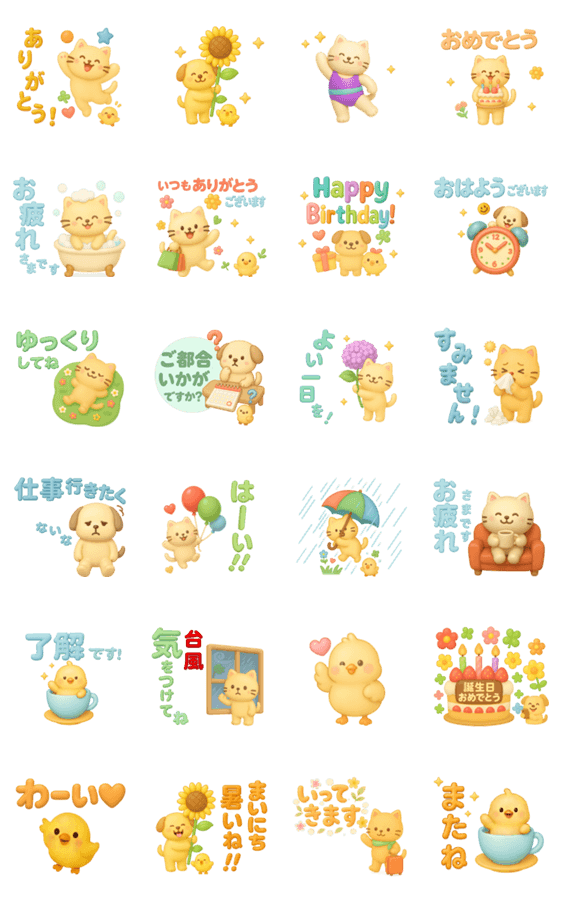 ぷっくりかわいい動物たちがポップアップで動くスタンプになりました♪ 毎日使えるあいさつや誕生日など盛りだくさん!#ねこ #いぬ #ひよこ