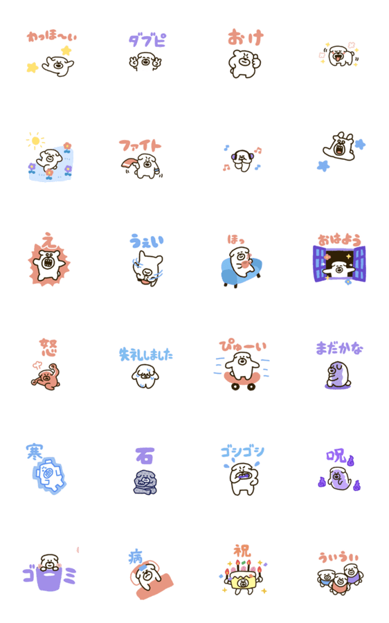 のんびりけたわんスタンプです。けたわんはけたくま(けたたましく動くクマ)のおともだちです。
