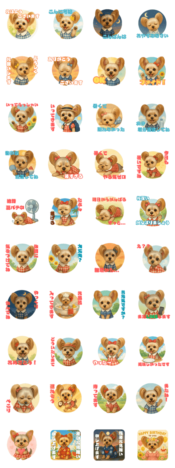 前作の通年スタンプに続き、第2弾は夏バージョン!かわいいヨーキーちゃんが、夏バテ&熱中症対策のひとことを届けます