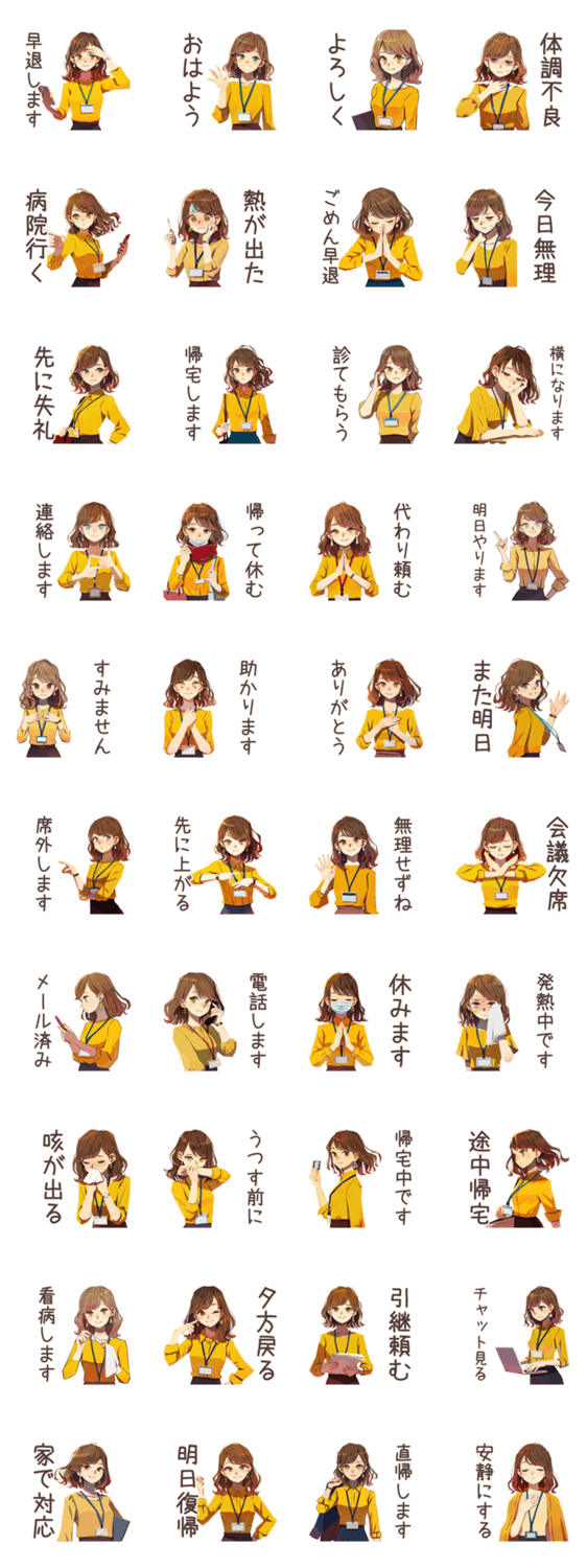OLが上品に早退連絡。仕事や上司へ丁寧に使える。ビジネス/おしゃれ/ほんわか/女子/きれいめ/体調不良/遅延/謝罪/敬語