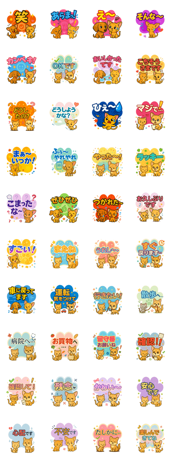 犬や猫、色鮮やかな肉球を背景にした可愛い日本語メッセージスタンプ集。感謝・挨拶・応援・気遣いなど、日常のやり取りを楽しく彩ります。