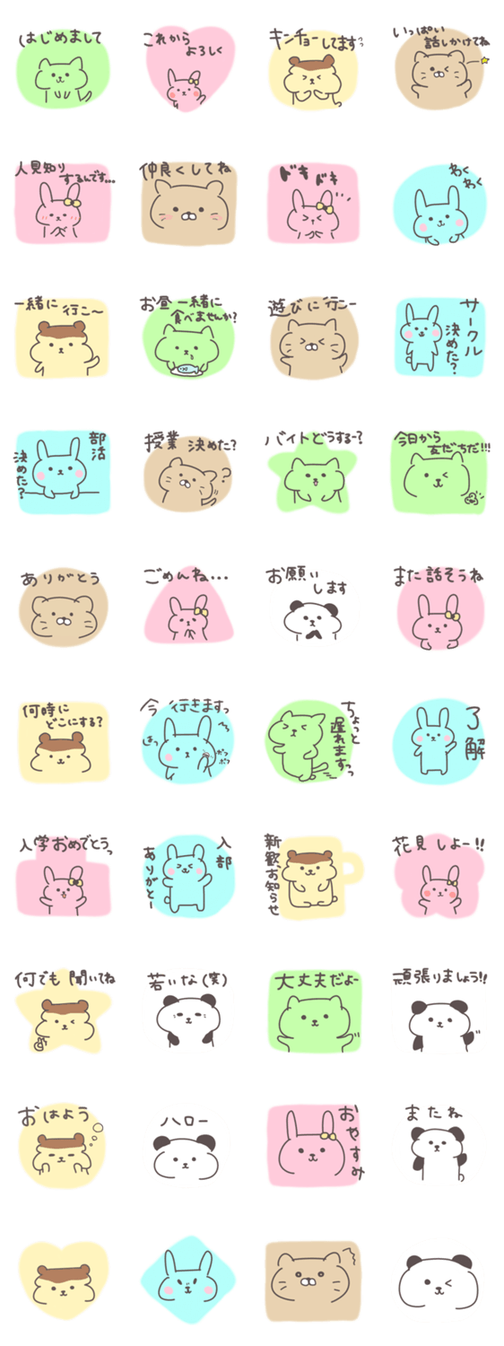 新生活応援スタンプ!高校生、大学生など学生向きです。新入生も先輩も使えるスタンプにしてみました。