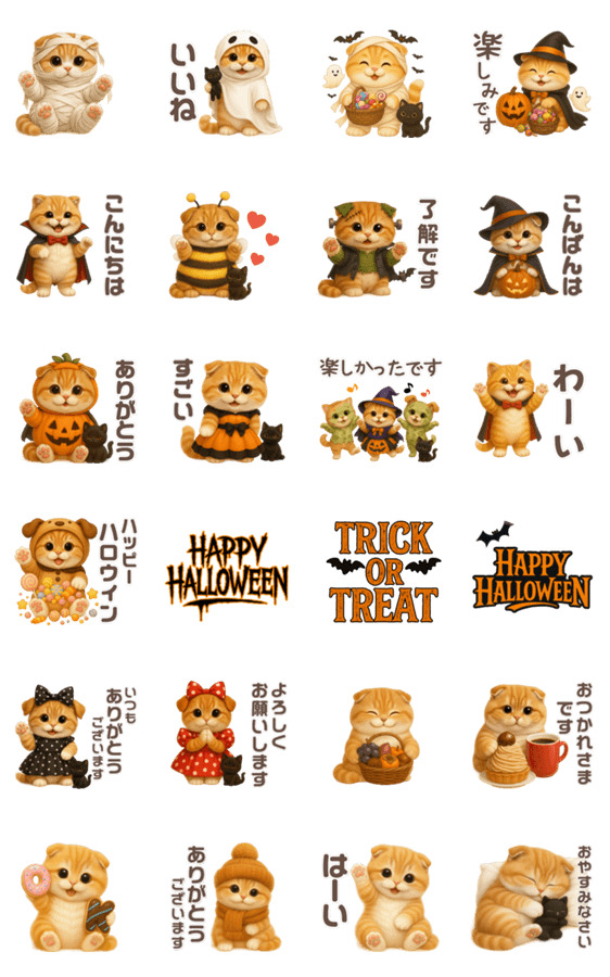 にゃんこが主役のハロウィンスタンプが登場!仮装した猫がキュート♡トリック・オア・にゃ〜!