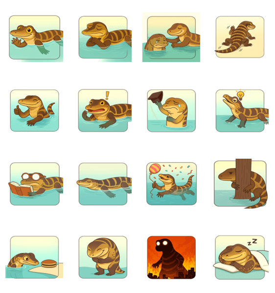 遠い南の国から、ミズオオトカゲたちのスタンプです