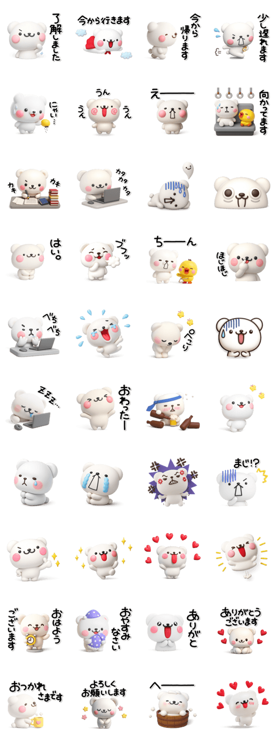 毎日一生懸命働くしろくまさんのスタンプです。ずっと使える内容を揃えましたのでスタンプ初心者の方にもオススメです。