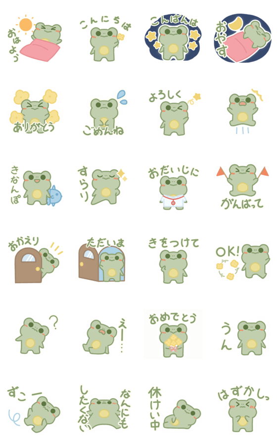 日常で使えるかえるのスタンプです。