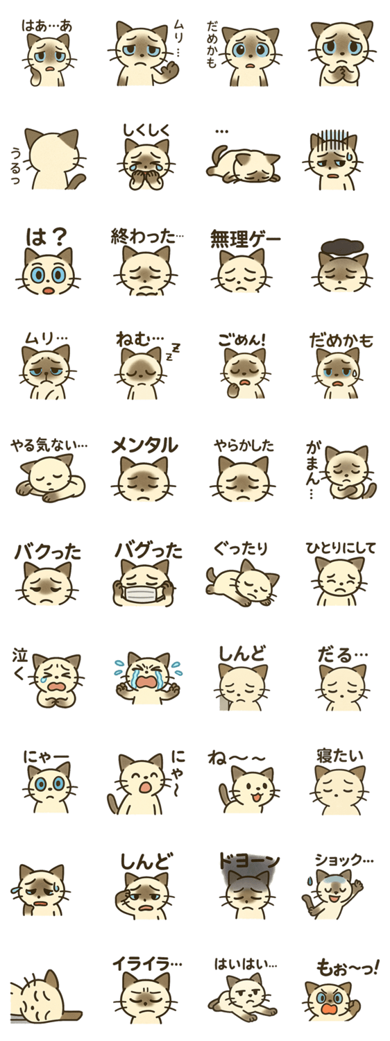 『うつネコ|ネガティブ感情スタンプ』 うつ病・双極性障害・発達障害・ADHD・アダルトチルドレン(AC)・毒親育ちなど、 “しんどい気持ち”を抱える人のための、そっと寄り添うシャム猫スタンプ。 「だるい」「今日はムリ」「バグった」「一人にして」など、 入院中・休校中にも使いやすい“やさしいネガティブ”メッセージを中心に収録。 メンタルが落ちている時に、言葉にできない気持ちを代わりに伝えてくれます。 心が疲れた友だちとのやりとりにも◎ 自分を責めずに、そっと感情を表現できるスタンプです。 -