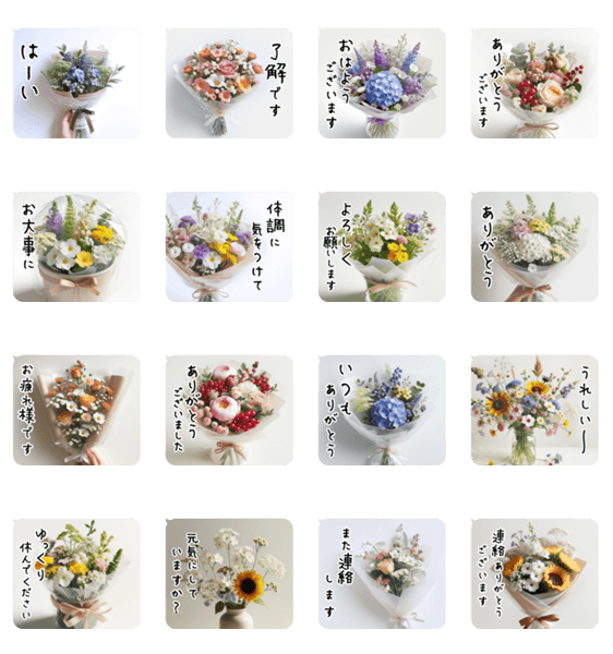 | スタンプ説明 | いろんな返信が返せます挨拶/天気/お祝い/春夏秋冬/敬語/女子/主婦/ママ友/シニア/職場/家族/季節のお花/花束/入院/病気お見舞いの挨拶/体調の気遣い/大人の女性/入院/闘病 |