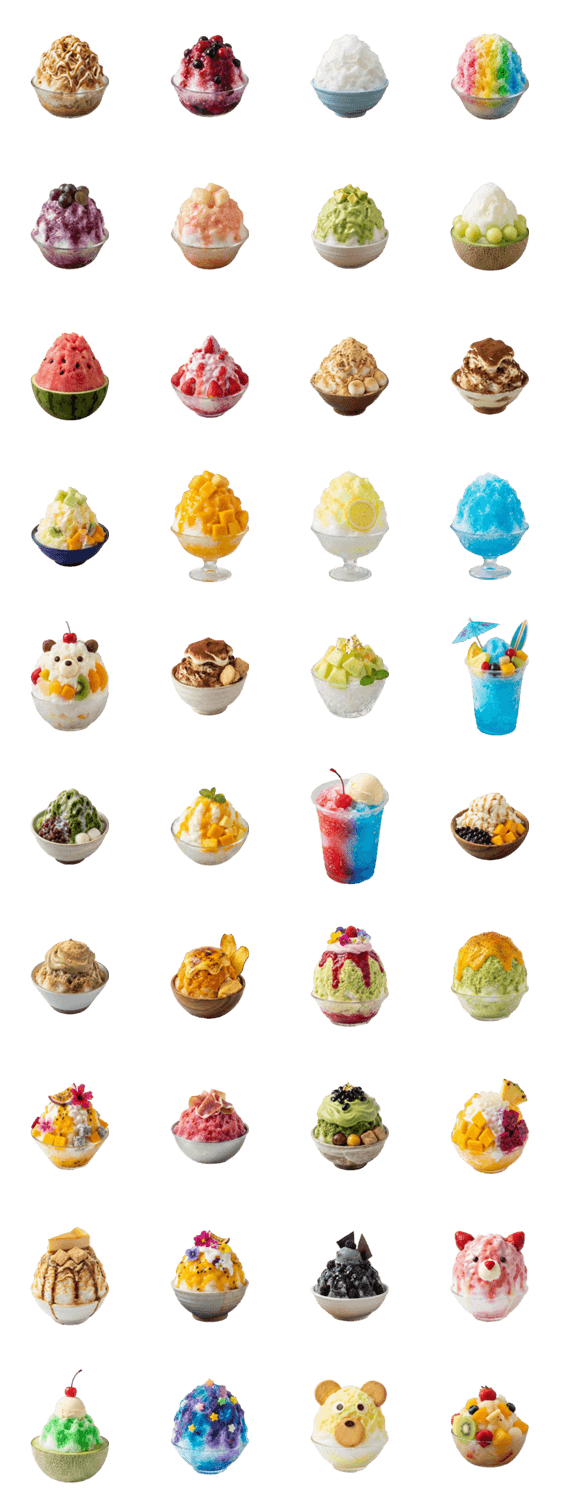 夏日 甜點 冷涼 蓬鬆 冰感 糖漿 甜味 繽紛 美味 甜品 寫真風 實感 透明感 涼爽 人氣 可愛 冷菓 食物 節慶 夜市 攤位 ※このスタンプはトークルームで大きく表示されるBIGスタンプです。