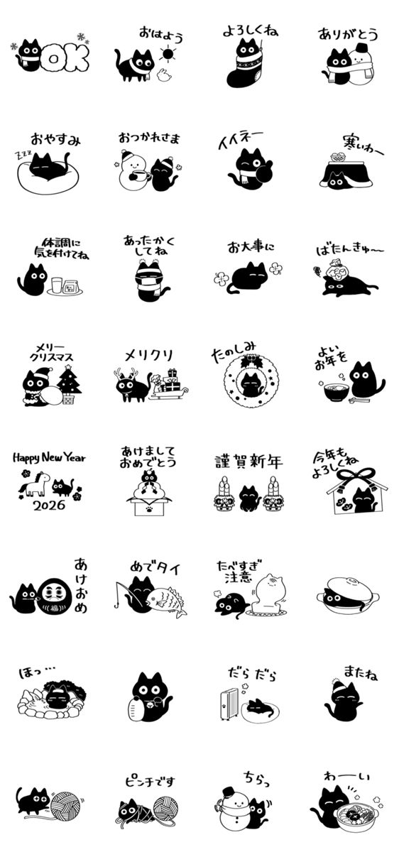 黒猫ねろまるの冬 -LINEスタンプマニア